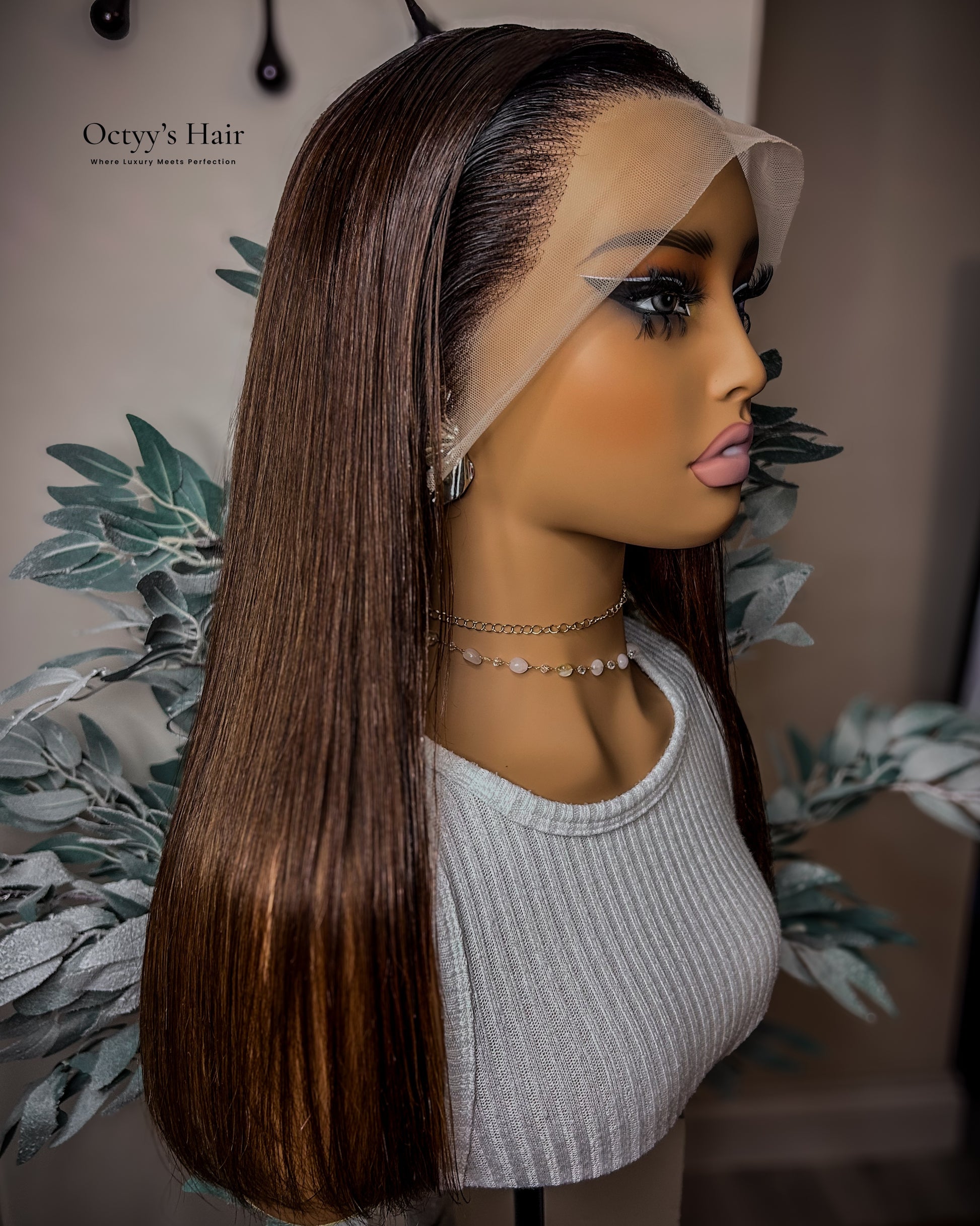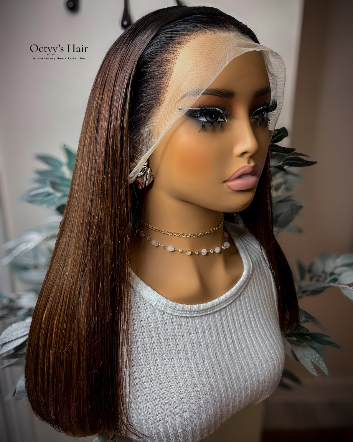 Zara – A stunning 24-inch 13x4 transparent lace human hair wig with 180% density that’s fully pre-styled and ready to wear. With its natural hairline and seamless lace, Zara makes installation easy—just apply your glue and you’re good to go. No extra styling needed; everything is set and done for you.